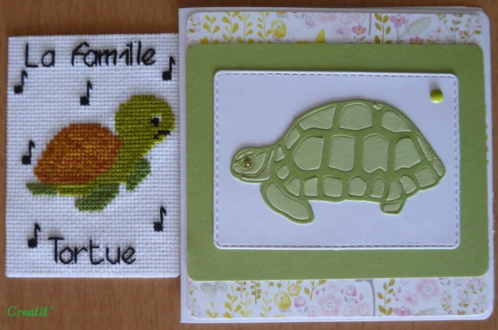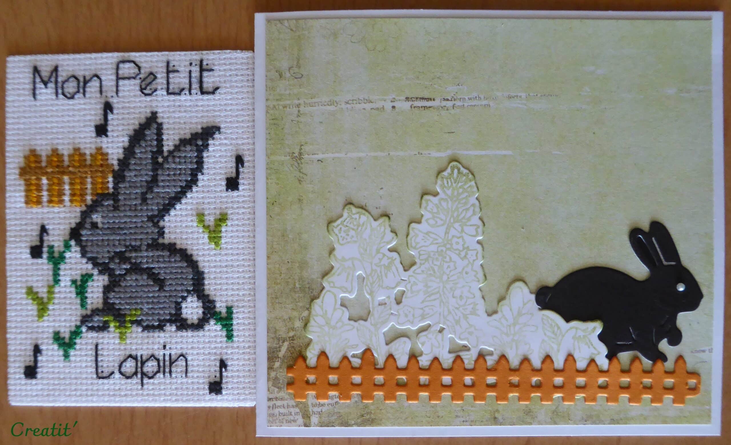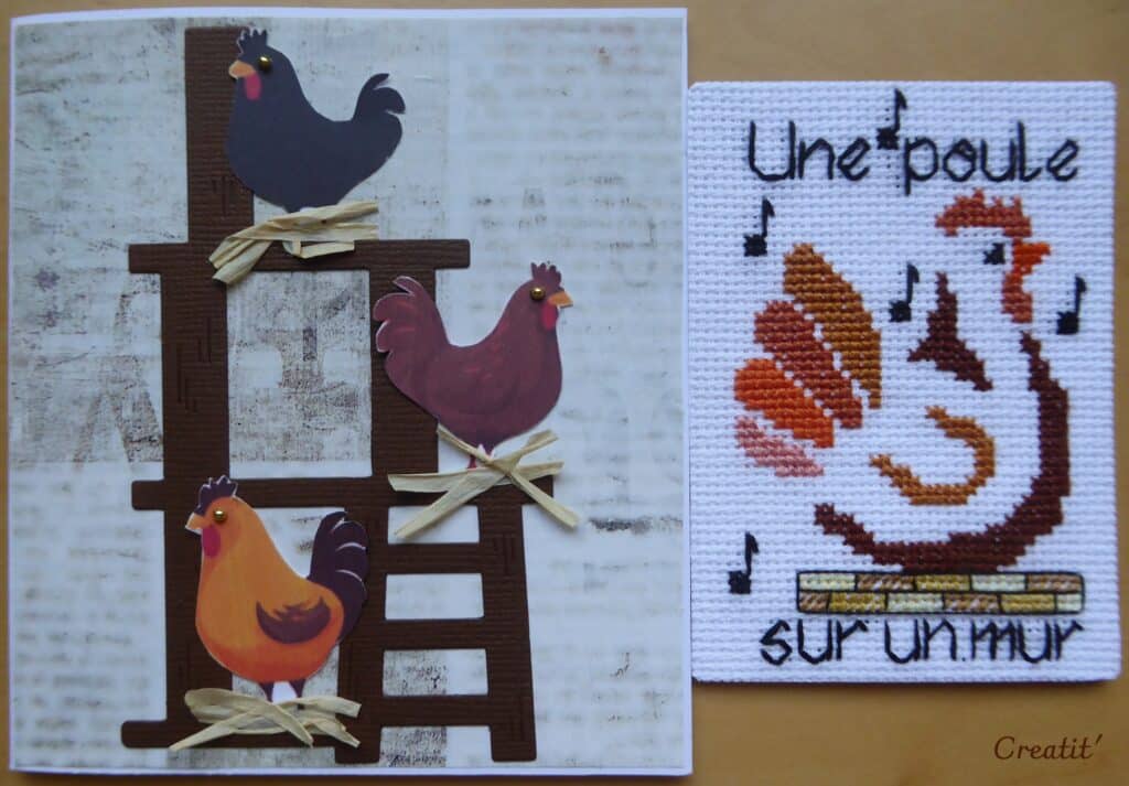 Voici l’ATC que j’ai envoyé à Martine B avec une carte assortie.