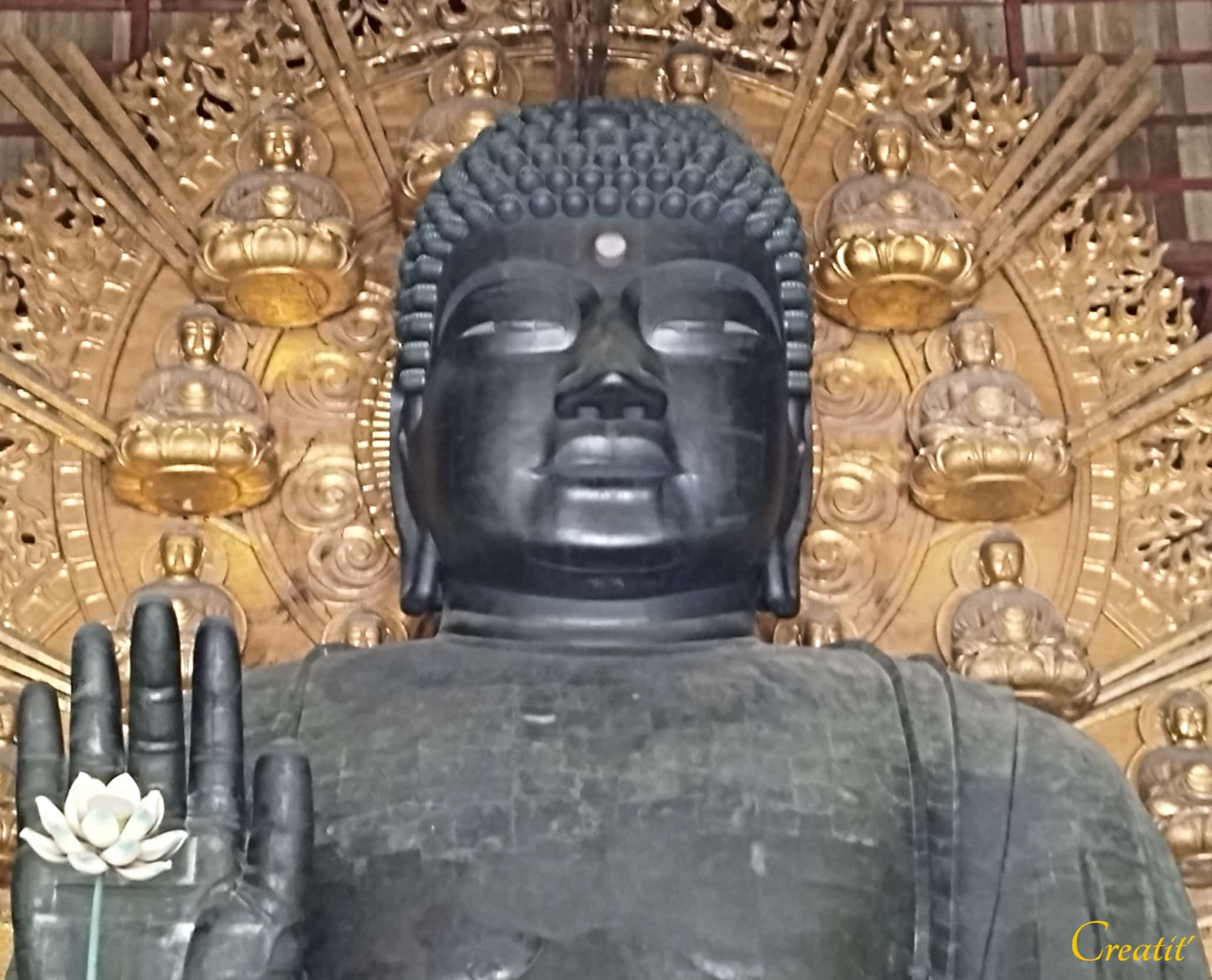 Le temple bouddhidte Todai-ji, situé à Nara, proche de Kyoto, accueille cette majestueuse statue en bronze de Bouddha assis, qui représente Vairocana (Dainichi Nyorai) et mesure la bagatelle de 18 mètres de haut et pèse 250 tonnes.
