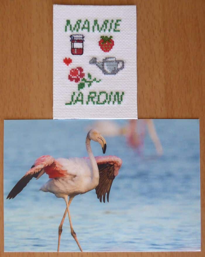 Celle que j’ai reçue de Fabienne avec une carte et un mini timbre trop beau.